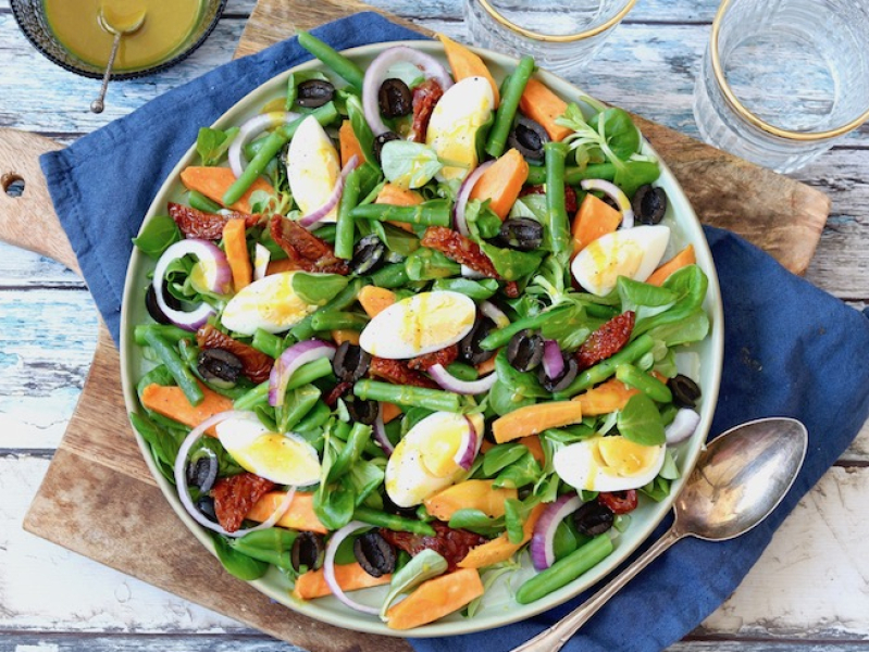 - Aardappelsalade rijkelijk gegarneerd