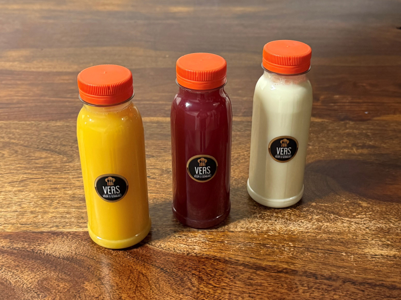 Meeneemflesje sap Jus 'd orange - aardbeiensap - halfvolle melk
